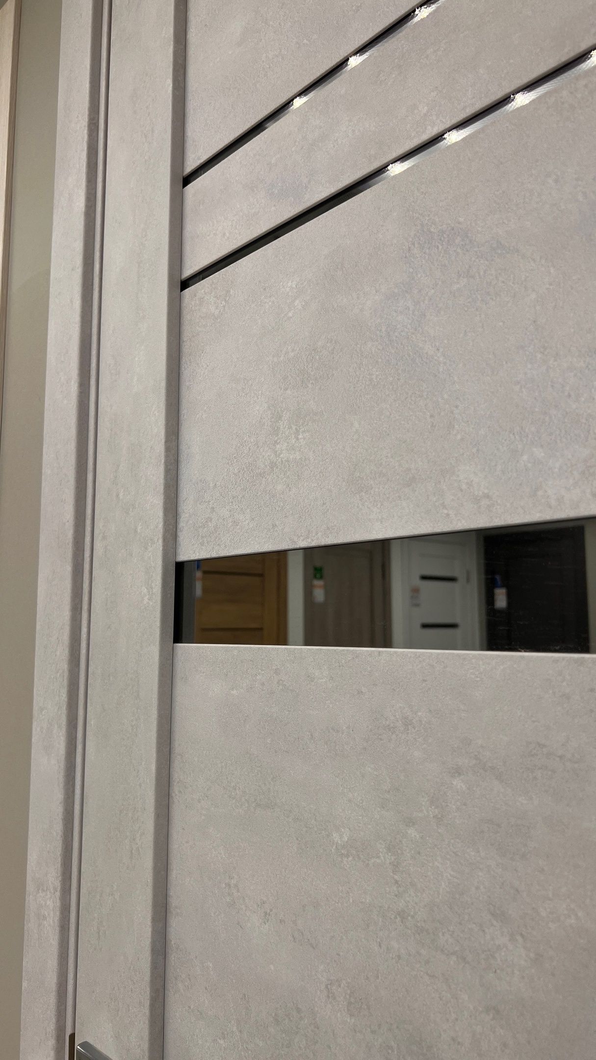 Дверь ПО Cezar 2 Бетон лайт стекло зеркало графит из Экошпона COVERFLEX (Двери Нева) в с установкой и доставкой
