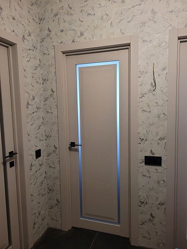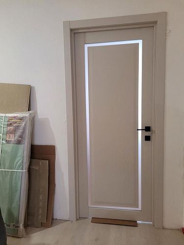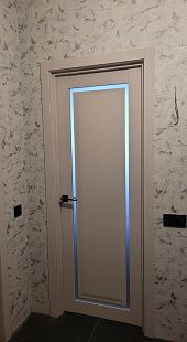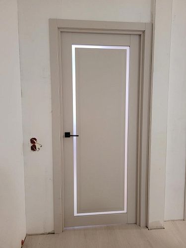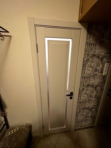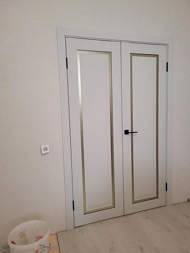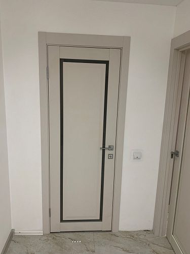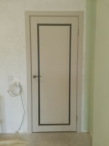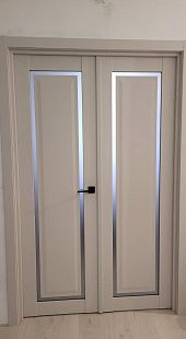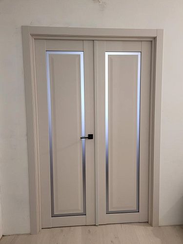 Дверь ПО Queen N23 Велюр светлый стекло белое из Экошпона COVERFLEX (Двери Нева) в с установкой и доставкой