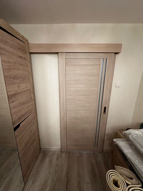 ПО QuLine 8-3 Беленый дуб стекло белое раздвижная с установкой "под ключ" в