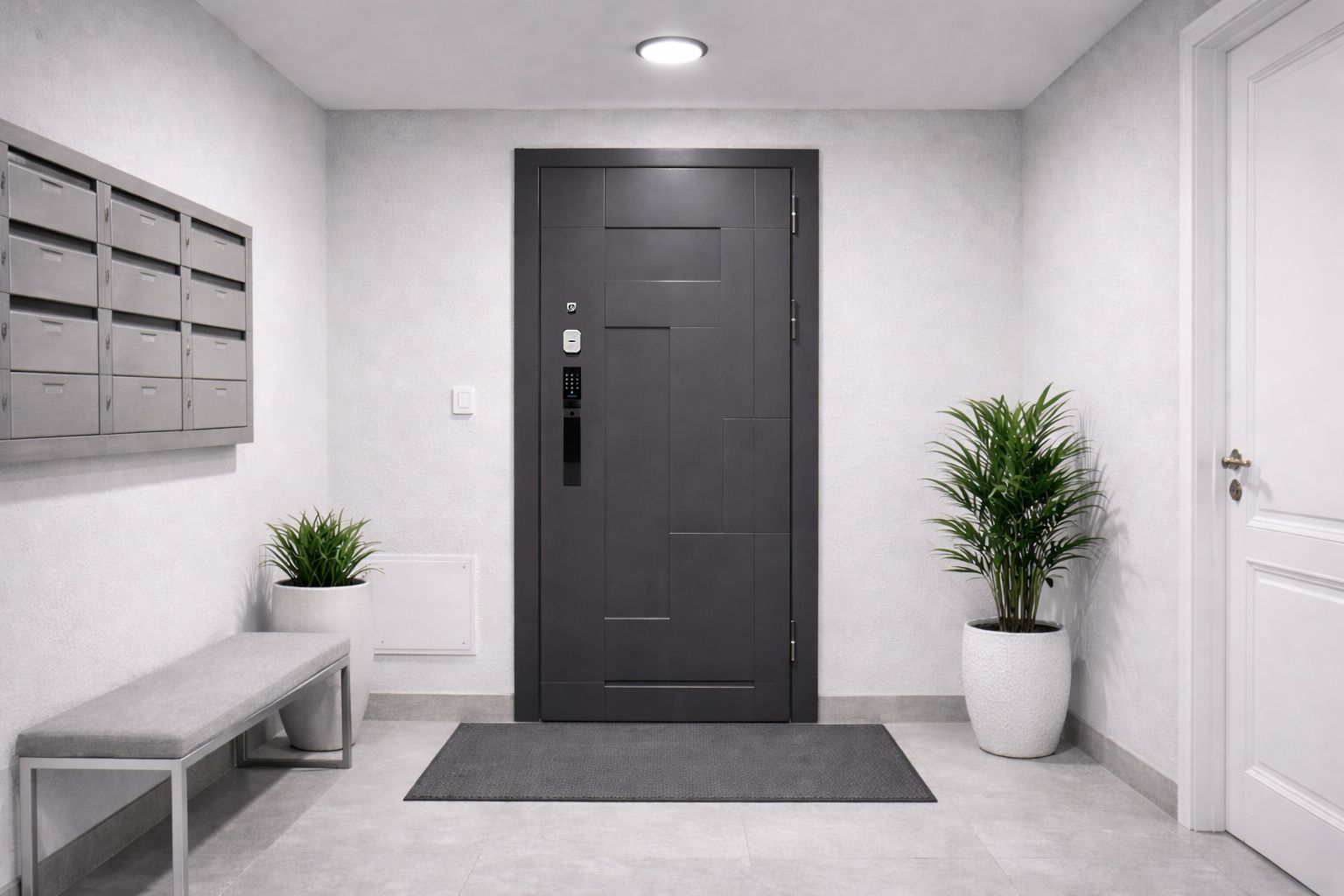 Дверь НЕВА 101 Серая + замок Moorgen T11 Pro в с установкой и доставкой